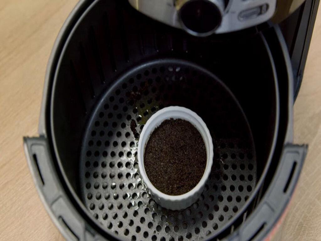 Bạn đặt một chiếc bát nhỏ làm bằng thủy tinh chịu nhiệt hoặc kim loại vào nồi chiên. Sau đó thêm một lượng cà phê sữa vào bát trong nồi chiên rồi điều chỉnh nhiệt độ của nồi chiên lên khoảng 200 độ C trong khoảng 3 phút. Nếu mùi nhựa vẫn còn, bạn có thể lặp lại quá trình này một lần nữa. Sau khi hoàn thành, rửa sạch nồi chiên bằng nước ấm và để ráo trước khi sử dụng.