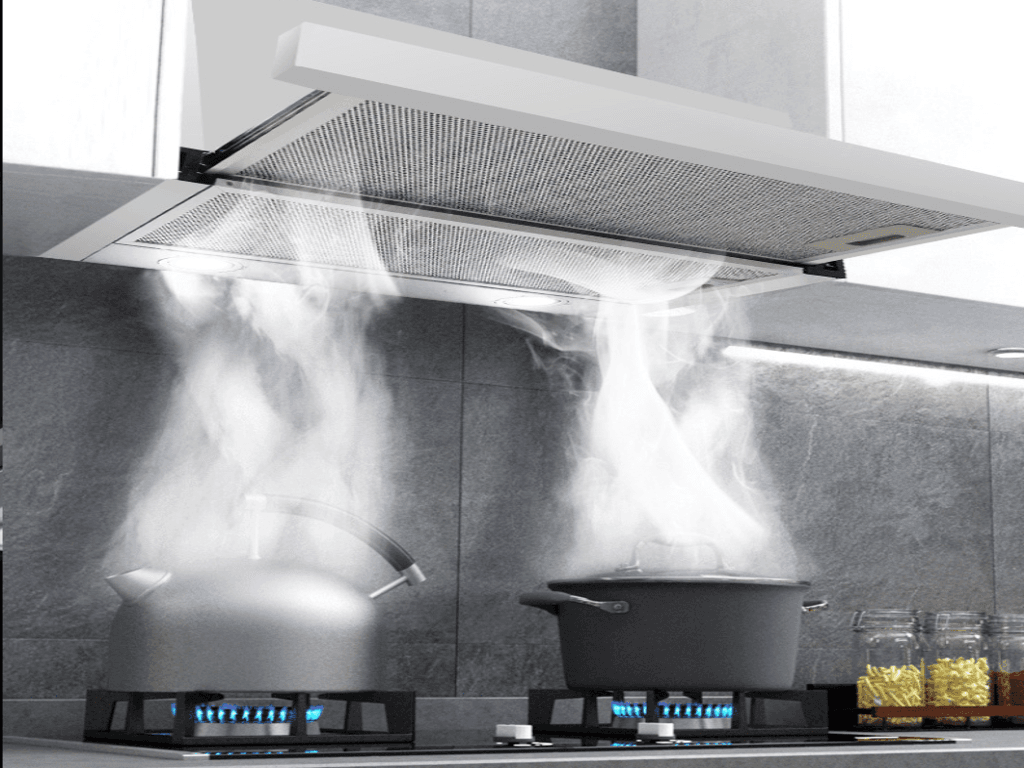 Động cơ của máy tạo ra dòng không khí hút vào máy từ không gian bếp, mang theo mùi hương, dầu mỡ và khí nóng từ quá trình nấu nướng. Lưới lọc giữ lại các hạt lớn và bụi bẩn từ không khí. Các hạt dầu mỡ lớn cũng được loại bỏ trong quá trình này. Sau khi qua lưới lọc, không khí được đẩy qua ống xả thoát khí và được đưa trực tiếp ra ngoài không gian bếp. Điều này giúp loại bỏ hoàn toàn mùi hương và các chất gây hại ra khỏi không gian bếp.