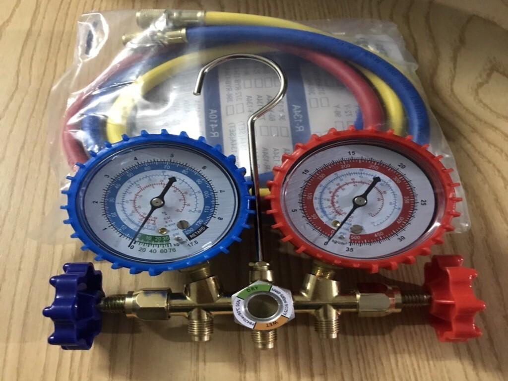 - Đồng hồ chỉ số: Gồm 2 mặt đồng hồ đo áp suất thấp và đo áp suất cao nhằm kiểm tra chân không và kiểm tra lượng gas đã được bơm đủ chưa. Hai mặt đồng hồ này có màu sắc khác nhau, có đường kính khoảng 80mm.