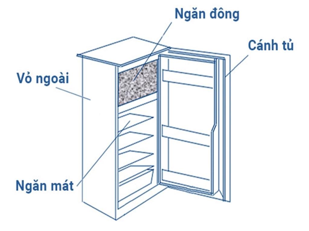 Tủ lạnh, hay còn được gọi là tủ đông hoặc tủ lạnh, thường có một cấu trúc cơ bản được chia thành 2 phần chính, mỗi phần có một nhiệm vụ riêng biệt: