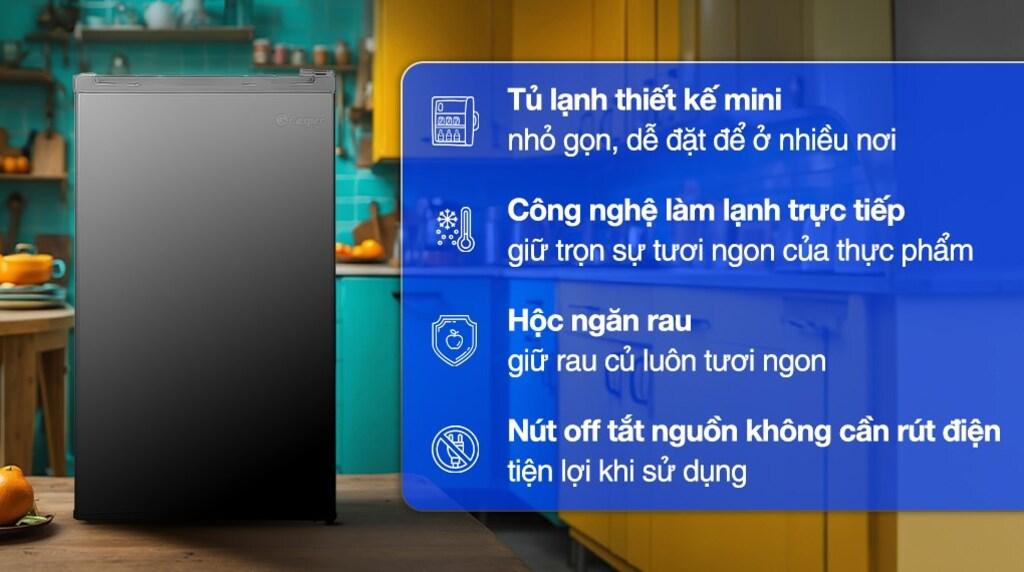 - Tiện lợi: Tủ lạnh mini thường được trang bị các tính năng tiện ích như kệ đựng chai, ngăn chứa đồ lạnh, đèn LED, và điều chỉnh nhiệt độ dễ dàng.