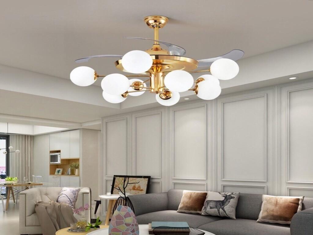 Với kích thước và thiết kế này, quạt trần đèn chùm không chỉ cung cấp ánh sáng và làm mát mà còn là một phần của trang trí nội thất, tạo điểm nhấn và tinh tế cho không gian sống. Tuy nhiên, khi lắp đặt quạt trần đèn chùm, bạn cần đảm bảo rằng nó được treo đủ cao để tránh va chạm với người đi lại và đồ đạc trong phòng. Ngoài ra, cũng cần chú ý đến độ mạnh của đèn chùm và khả năng điều chỉnh ánh sáng để tạo ra không gian sáng đẹp và thoải mái cho người dùng.