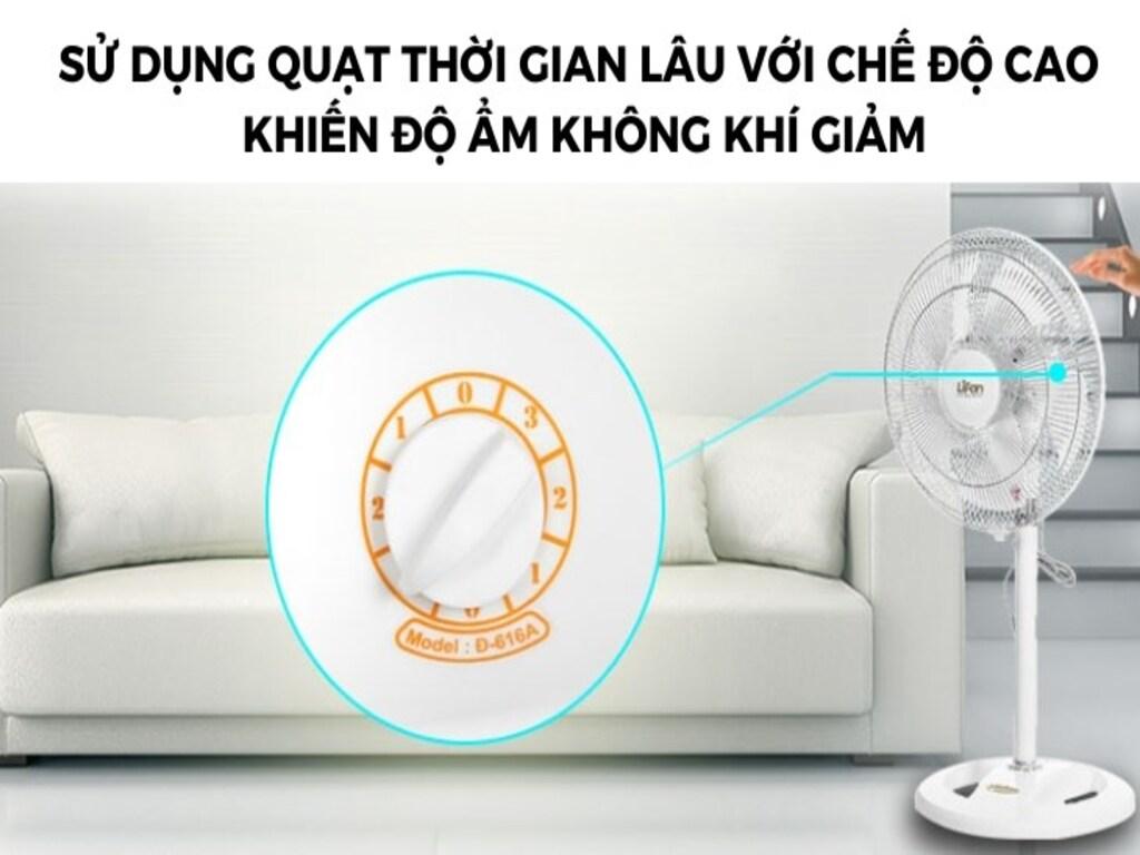 - Cho quạt đảo chiều khi sử dụng: Khi quạt đảo chiều, không khí trong phòng sẽ được phân phối đều hơn, giúp không gian thoải mái hơn và tránh cảm giác ngột ngạt.