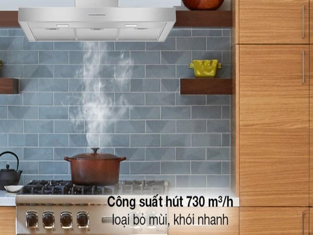 - Công suất hút tối đa: từ 304 đến 820m3/h, đi kèm với 3 tốc độ hút khác nhau. Điều này cho phép bạn điều chỉnh công suất hút phù hợp với nhu cầu khử mùi và độ lớn của không gian bếp.