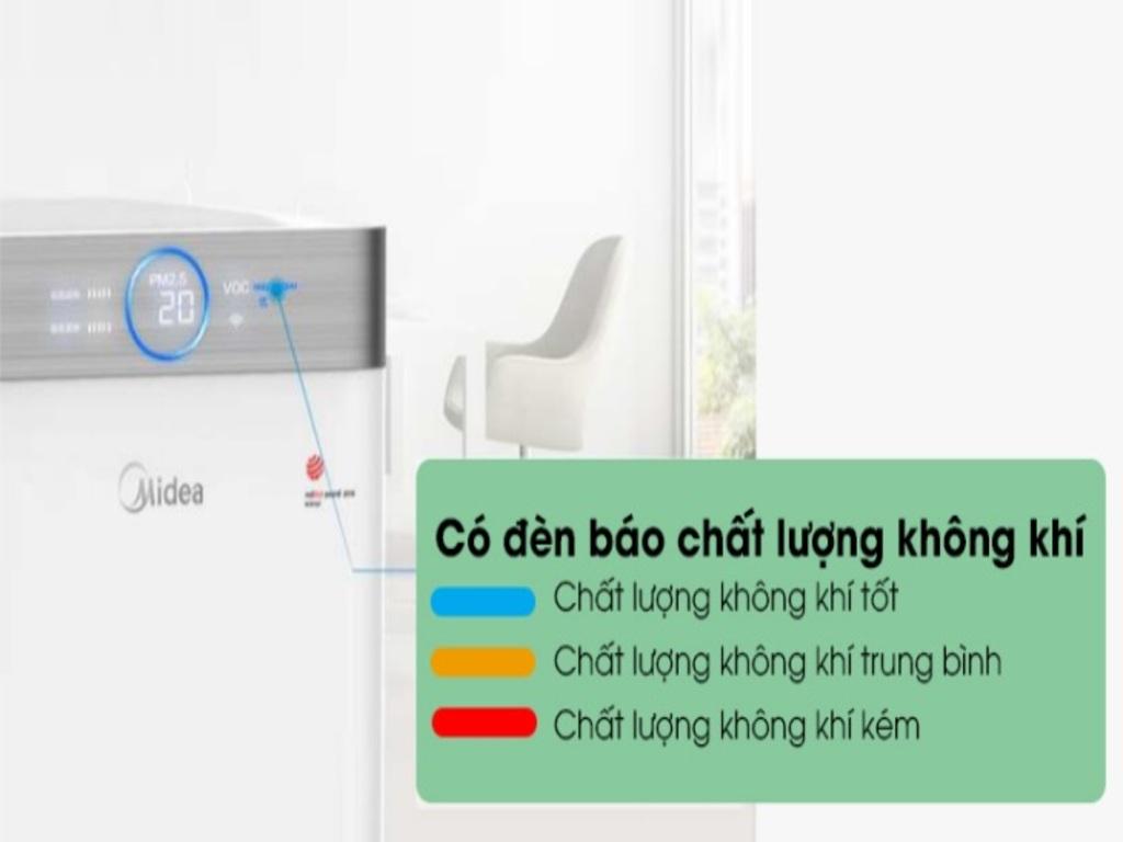 Tính năng đèn cảnh báo chất lượng không khí trên máy lọc không khí Midea là một tính năng rất hữu ích giúp người dùng nhận biết và đánh giá chất lượng không khí xung quanh một cách dễ dàng.
