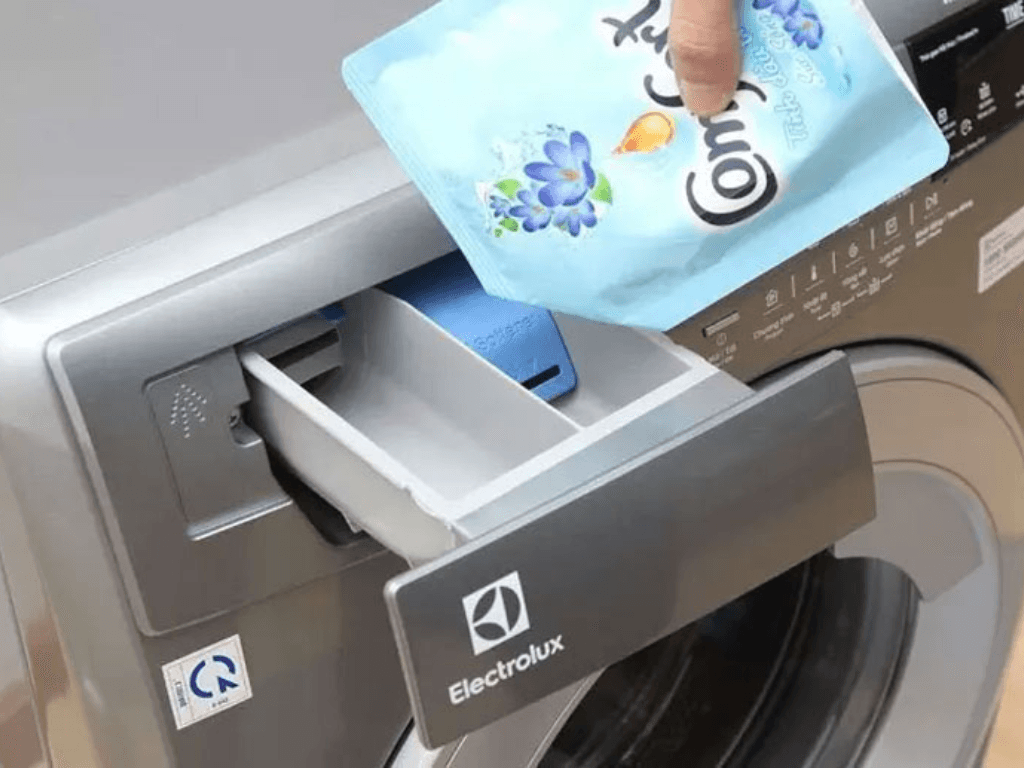 - Cho bột giặt và nước xả vải vào khay đựng: Máy giặt Electrolux để nước giặt vào đâu? Đọc kỹ hướng dẫn sử dụng của bột giặt để biết liều lượng phù hợp.