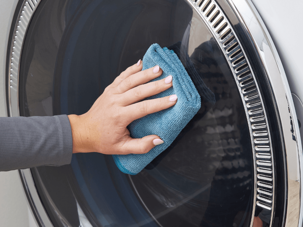 - Dùng khăn ẩm: Dùng khăn mềm ẩm lau sạch bề mặt bên ngoài máy giặt.
