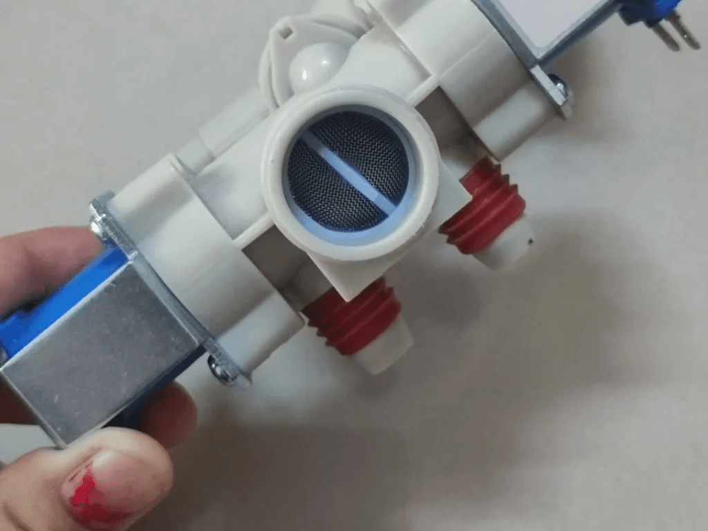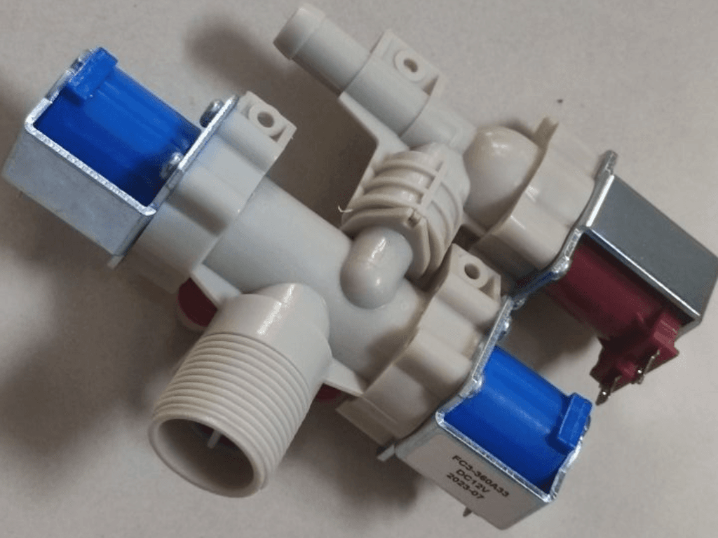 - Van cấp nước điện từ (thường là van cấp nước máy giặt LG 12V): Đây là loại van phổ biến nhất, sử dụng cuộn dây điện từ để điều khiển dòng nước.