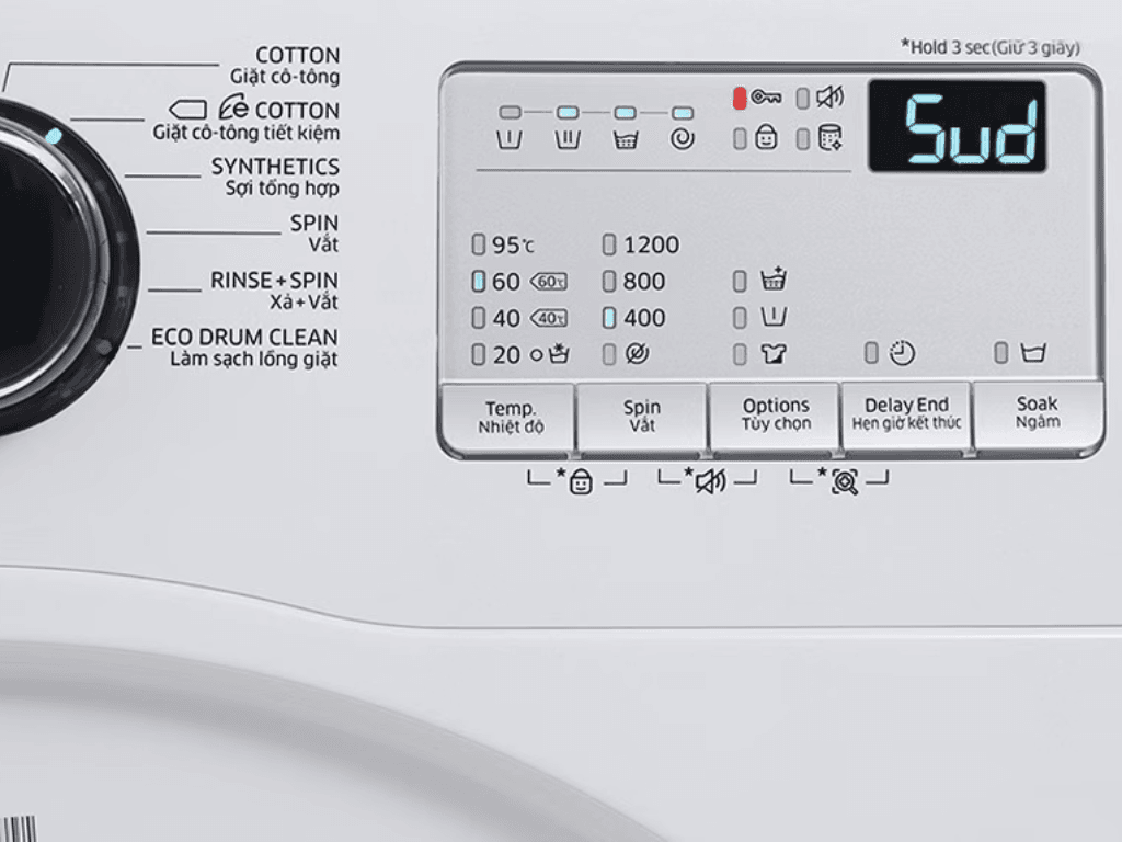 - mã lỗi máy giặt samsung 5UD hiển thị trên bảng điều khiển: Đây là dấu hiệu rõ ràng nhất cho thấy máy giặt đang gặp vấn đề.