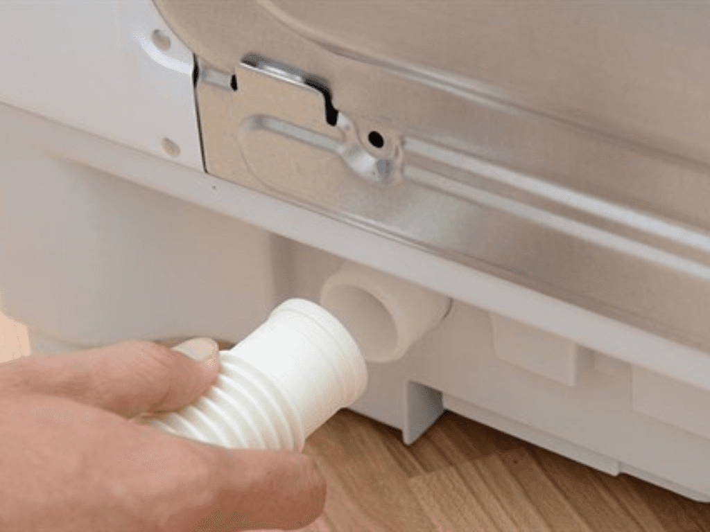 Kiểm tra cả đầu ống xả được gắn vào máy giặt xem có bị tắc nghẽn không. Sau khi vệ sinh sạch sẽ, lắp ống xả trở lại vị trí ban đầu, đảm bảo ống được gắn chắc chắn và không bị gấp khúc.