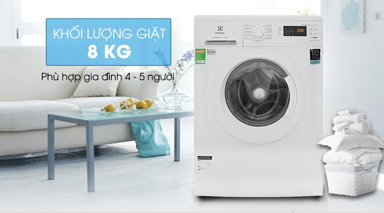 1.Công suất vừa vặn: 8kg là con số không quá lớn cũng không quá bé. Với sức chứa 8kg, máy giặt Electrolux 8kg phù hợp cho hầu hết các gia đình với nhu cầu giặt trung bình, giúp giặt đồ hàng ngày một cách hiệu quả.