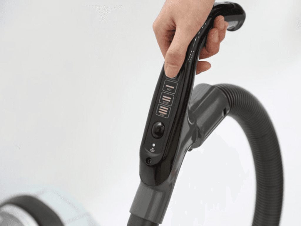 Nút điều chỉnh công suất: Thay đổi công suất của máy hút, thường có nhiều cấp độ từ yếu đến mạnh. Công suất máy từ mức cao đến trung bình phù hợp cho bề mặt phẳng và thảm. Mức độ công suất từ trung bình đến thấp phù hợp cho các bề mặt mềm như rèm cửa hay ghế sofa.