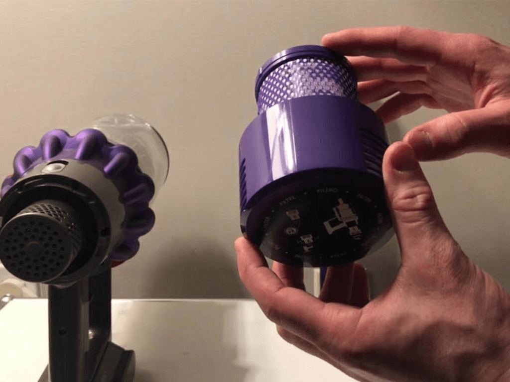 Bộ lọc đóng vai trò quan trọng khi giữ lại các chất gây dị ứng, bụi bẩn. Các dòng máy hút bụi Dyson V10, Dyson V11 được trang bị bộ lọc HEPA phía sau động cơ. Khi bộ lọc gặp sự cố, đèn báo lỗi trên tay cầm se nhấp nháy để cảnh báo.
