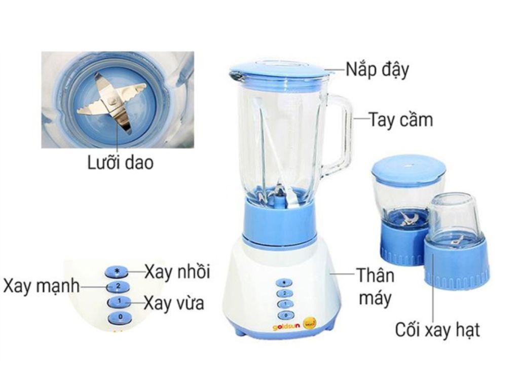 - Gia đình muốn tiết kiệm chi phí: Thay vì mua nhiều thiết bị khác nhau, sử dụng Goldsun BL GTY05 3in1, bạn đã có thể xay nhuyễn, xay khô và ép nước trái cây với giá 450.000 VND.