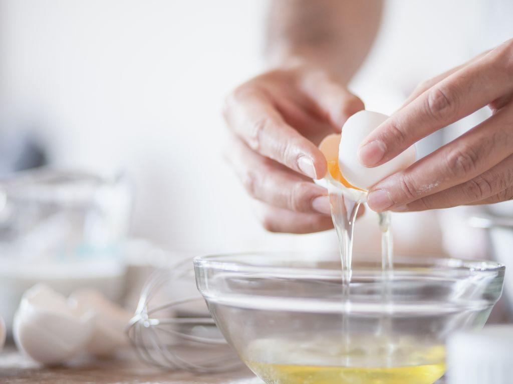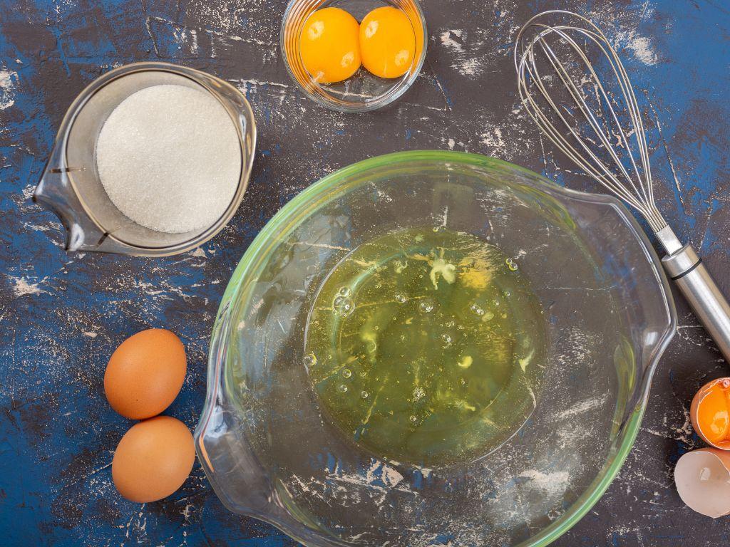 Tách lòng trắng trứng: Đảm bảo không để lòng đỏ dính vào lòng trắng, vì điều này có thể làm giảm khả năng bông của lòng trắng.