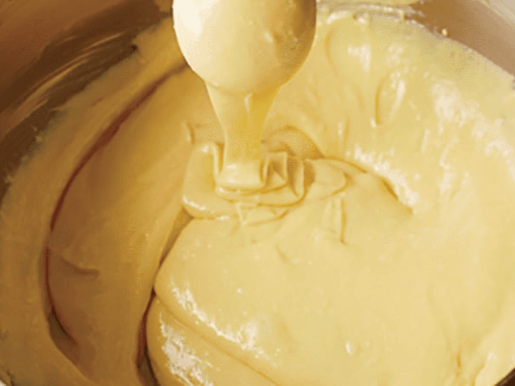 Khi cho trứng vào hỗn hợp bột làm bánh, bạn nên đổ một cách từ từ để bột không bị nhão và có thể nở đều đặn. Đổ từng chút trứng vào cho đến khi đạt được đổ đặc mong muốn thì dừng lại.