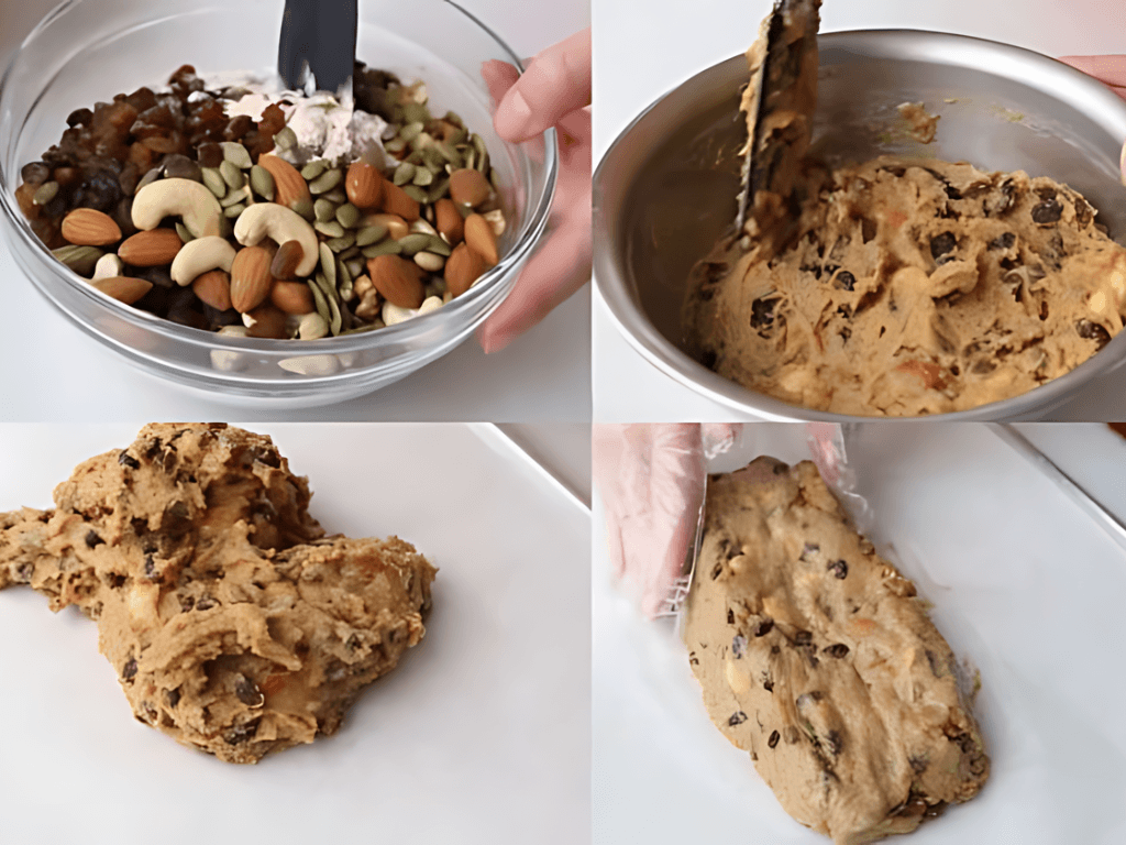 Sử dụng tay để nhào đều cho đến khi tất cả các thành phần kết hợp hoàn toàn và tạo thành một cục bột đồng nhất.