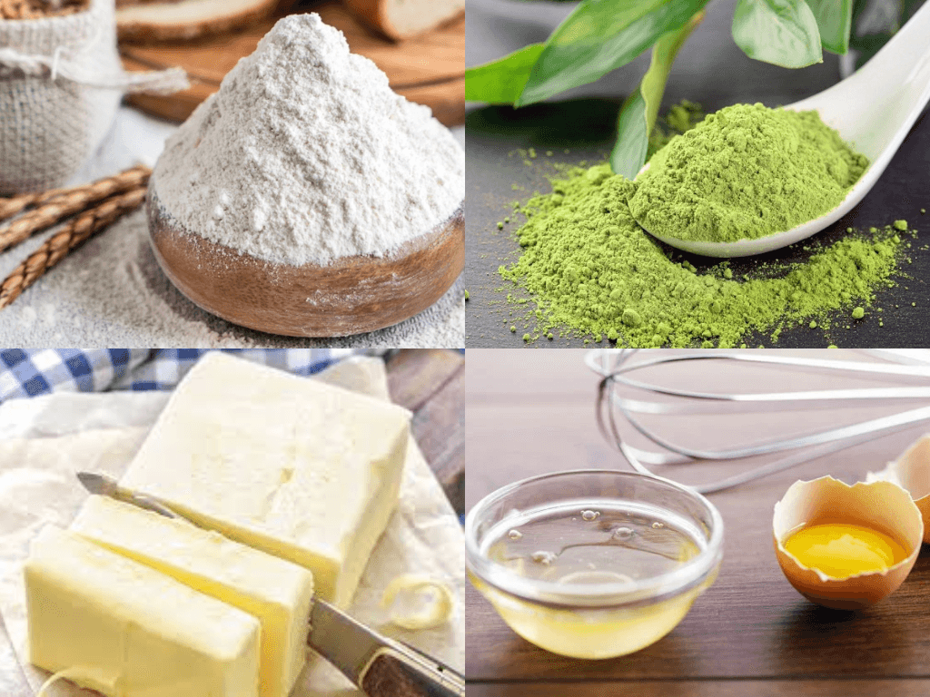 Nguyên liệu làm bánh lưỡi mèo matcha bao gồm: