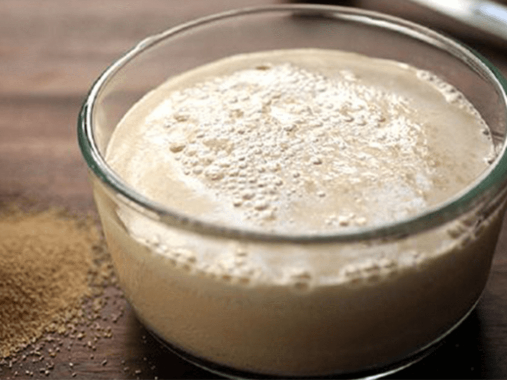 Đầu tiên, lấy một chiếc cốc và đặt vào đó 5g men nở, sau đó khuấy đều với 200ml nước ấm có nhiệt độ từ 32-38 độ C. Tiếp theo, thêm vào cốc 20g đường và khuấy cho đến khi đường tan hoàn toàn trong dung dịch.