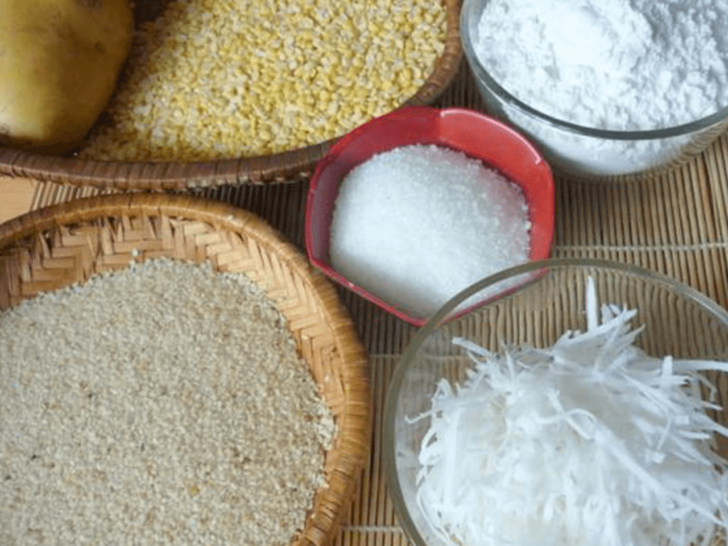 Trộn bột nếp, bột gạo, bột nổi, đường cát.