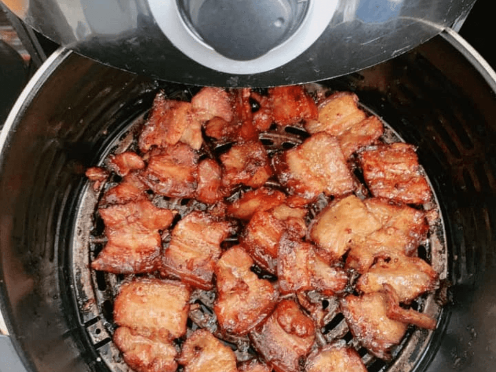 Sau khi ướp đủ thời gian, lấy thịt ba chỉ và thịt vai heo ra khỏi tủ lạnh. Xếp thịt vào nồi chiên không dầu, nướng ở nhiệt độ 160 - 180 độ C trong vòng 10 phút. Sau đó, lật thịt và nướng thêm 5 phút nữa ở cùng nhiệt độ để đảm bảo thịt chín đều và có màu sắc đẹp mắt.