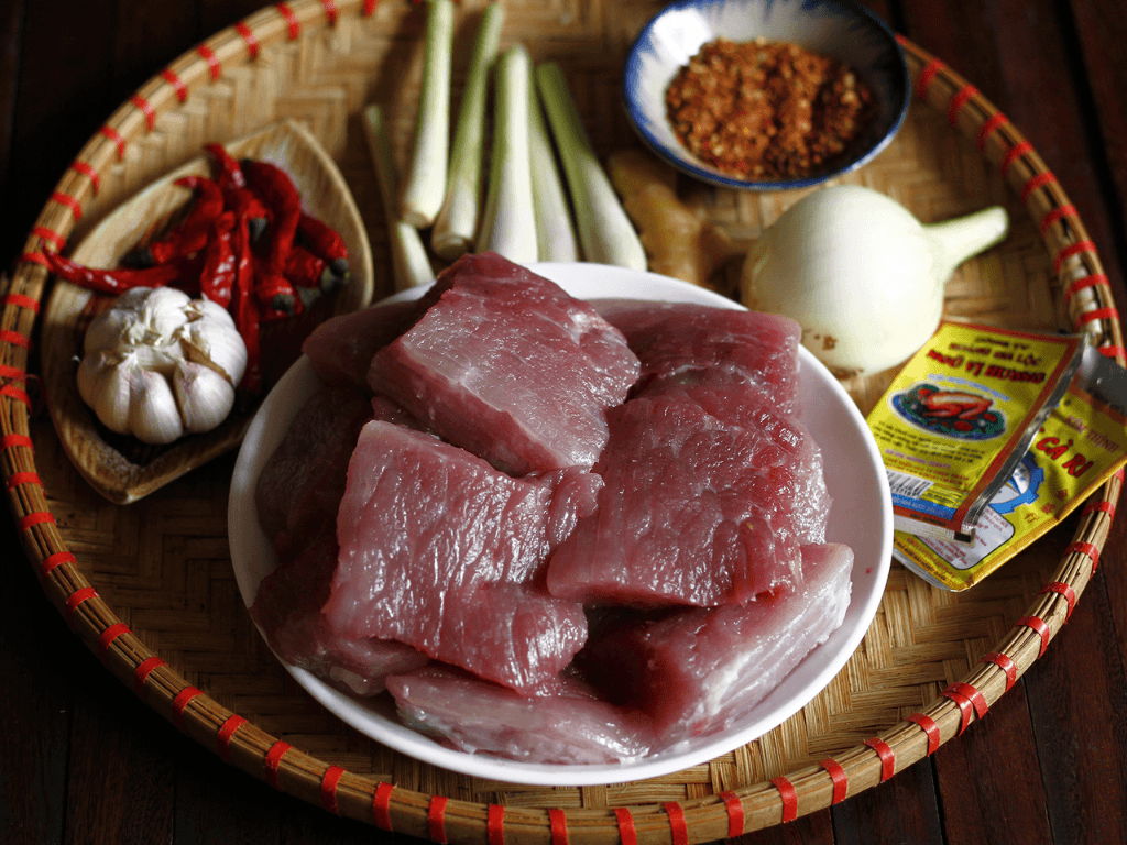 -Thịt lợn : 1 kg, bạn nên chọn phần thịt nạc mông