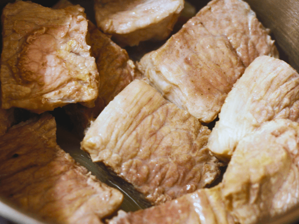 Đầu tiên, bạn cần rửa sạch thịt lợn, lọc bỏ gân và mỡ.