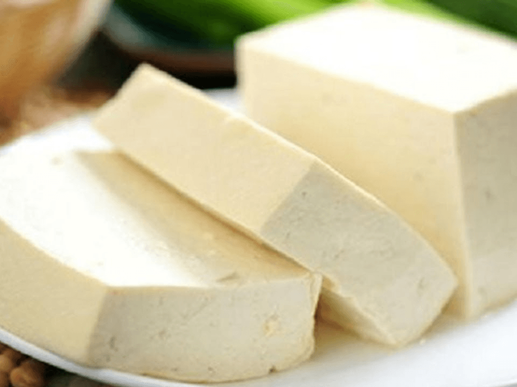 Rửa sạch đậu hũ và cắt thành các miếng nhỏ hình vuông vừa ăn.
