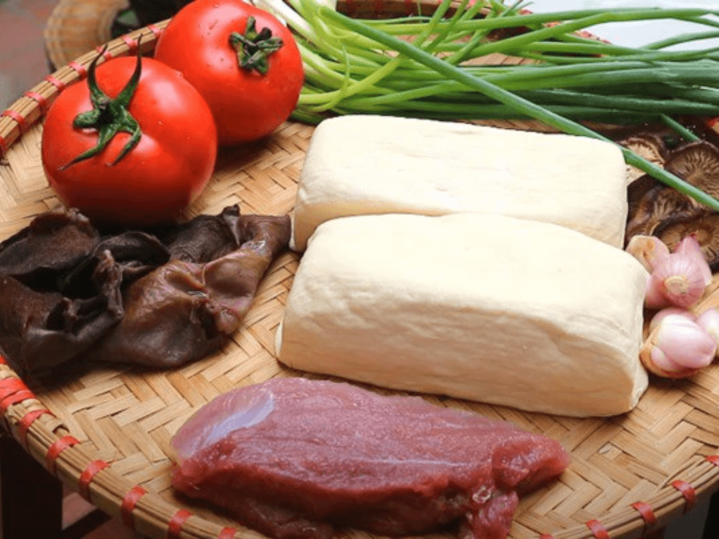 Các nguyên liệu làm đậu hũ nhồi thịt:
