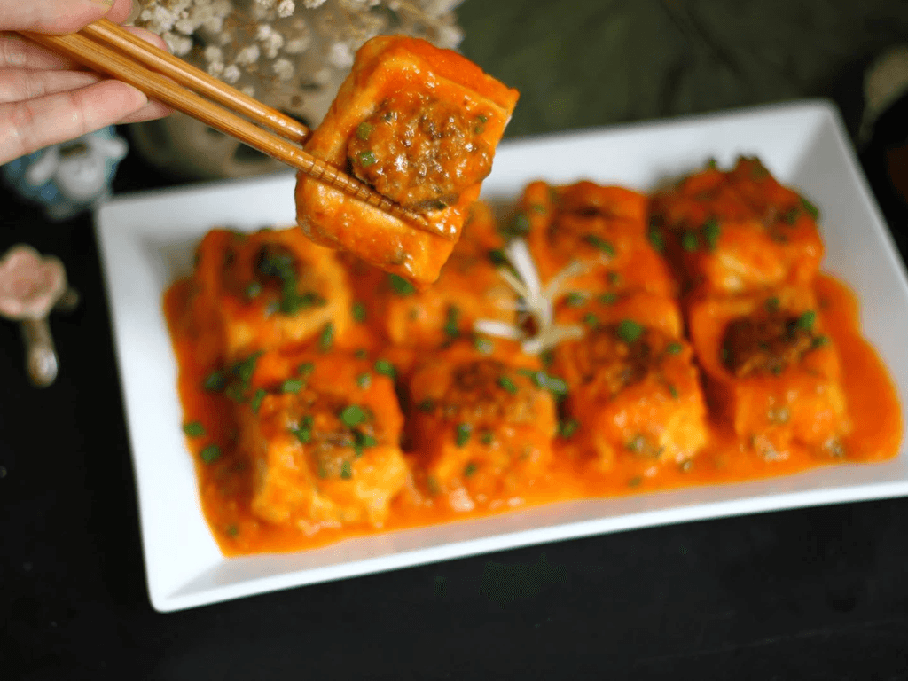 Món đậu hũ nhồi thịt thơm ngon với lớp đậu bên ngoài giòn tan, nhân thịt bên trong mềm mịn và đậm đà hương vị sẽ là lựa chọn tuyệt vời cho bữa cơm gia đình.
