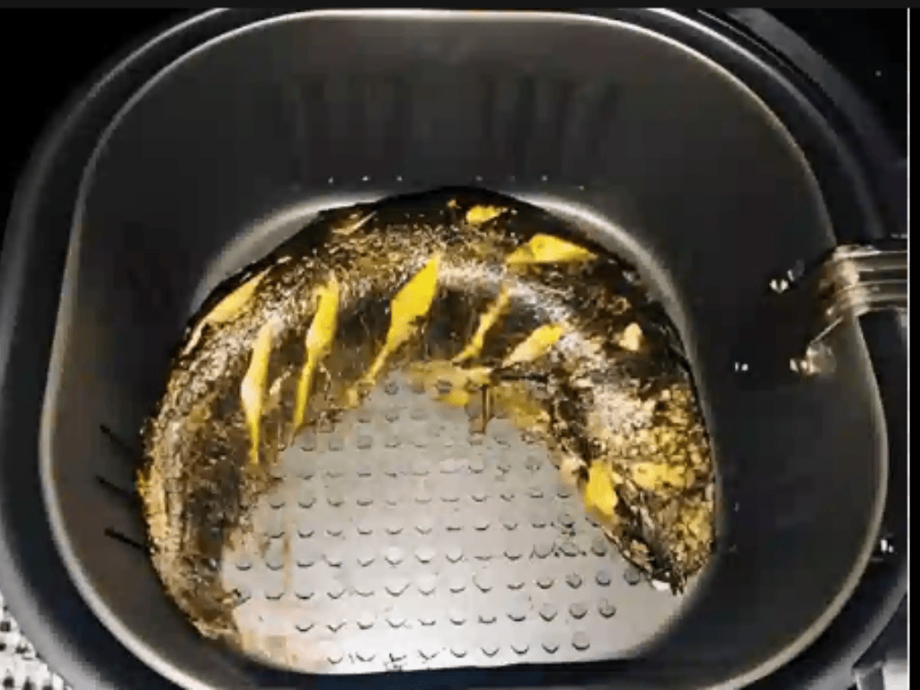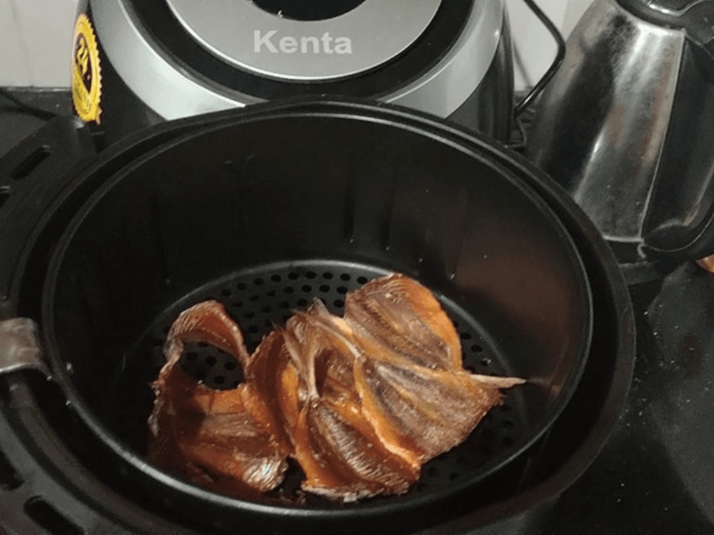 Cá sau khi ướp cho vào nồi chiên không dầu nướng ở nhiệt độ 175 độ trong vòng 5 đến 10 phút.