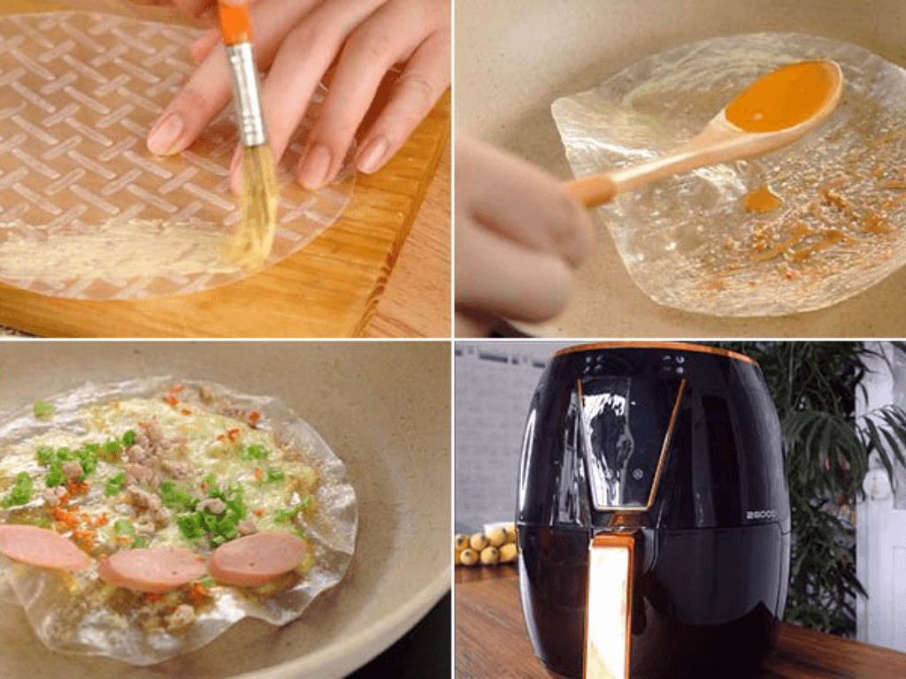 Cách làm bánh tráng chay bằng nồi chiên không dầu bao gồm các bước sau: