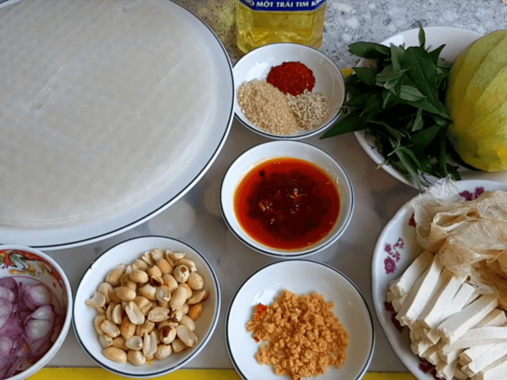 Dưới đây là những nguyên liệu cần chuẩn bị để làm bánh tráng nướng chay: