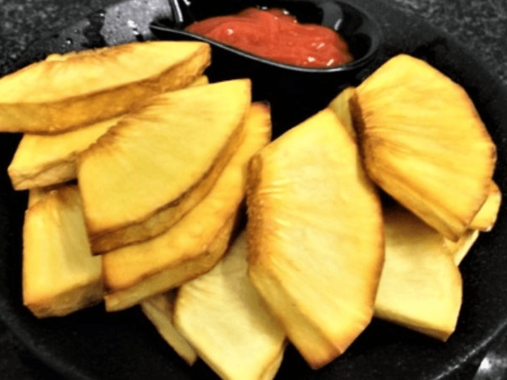 Để có được món sake chiên bằng nồi chiên không dầu thơm ngon, bạn cần lưu ý từ việc chọn nguyên liệu chính cho đến cách sơ chế sake thành từng miếng vừa ăn. Trước hết, hãy chọn những quả sake chín bùi, có kích thước lớn và vỏ xanh ngả vàng. Sau đó, tiến hành gọt vỏ, loại bỏ phần cùi bên trong và cắt thành những miếng vừa ăn.
