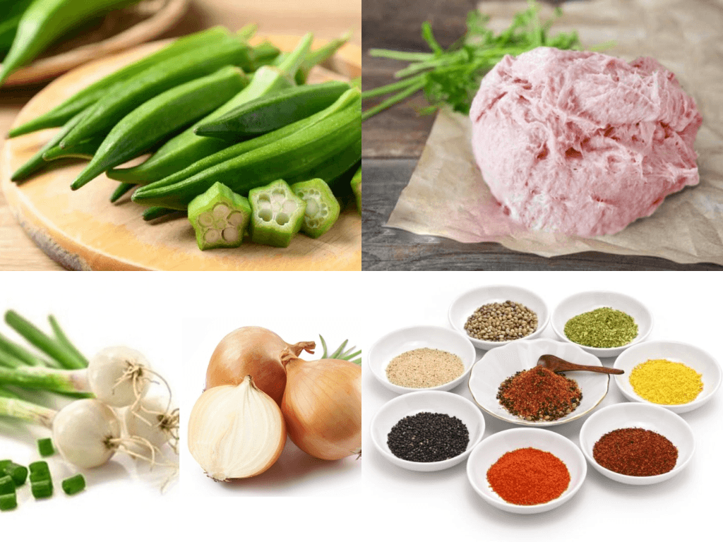 Nguyên liệu để làm đậu bắp nhồi thịt bao gồm:
