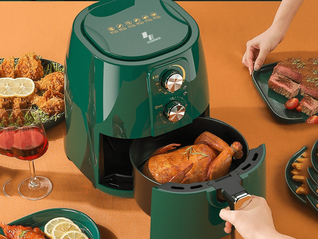 -Dung tích lớn: Nồi chiên không dầu Trung Quốc thường có dung tích từ 3-8L, phù hợp cho gia đình từ 6-8 người.