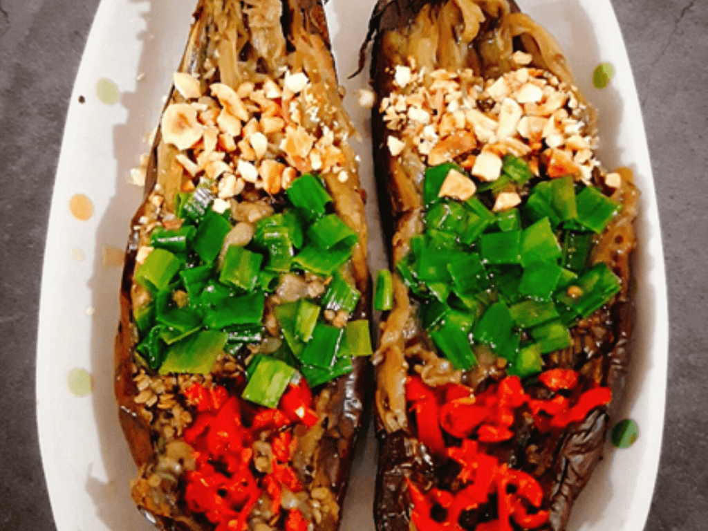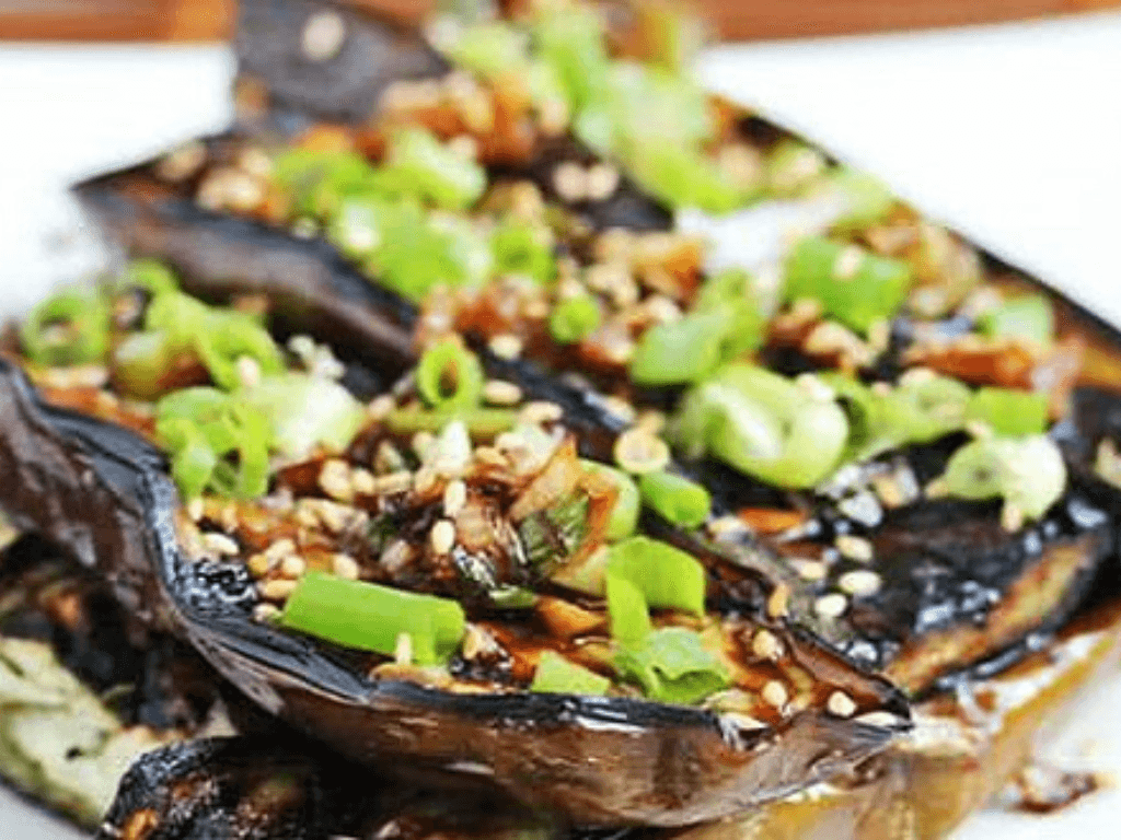 Cà tím nướng mỡ hành thơm mùi đặc trưng của hành, ngon và béo thơm hấp dẫn.