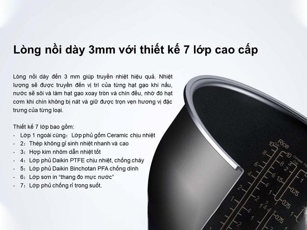 - Một số dòng nồi Toshiba có cấu tạo lòng nồi lên tới 7 lớp với độ dày 3mm. Nhờ đó nhiệt trong nồi được giữ ổn định hơn và việc truyển nhiệt không sinh các phản ứng gây hại cho cơ thể. Lòng nồi cũng được tráng men chống dính cao cấp hạn chế việc dính cơm vào đáy nồi giúp tiết kiệm thời giản chùi rửa và giảm tình trạng xây xước.