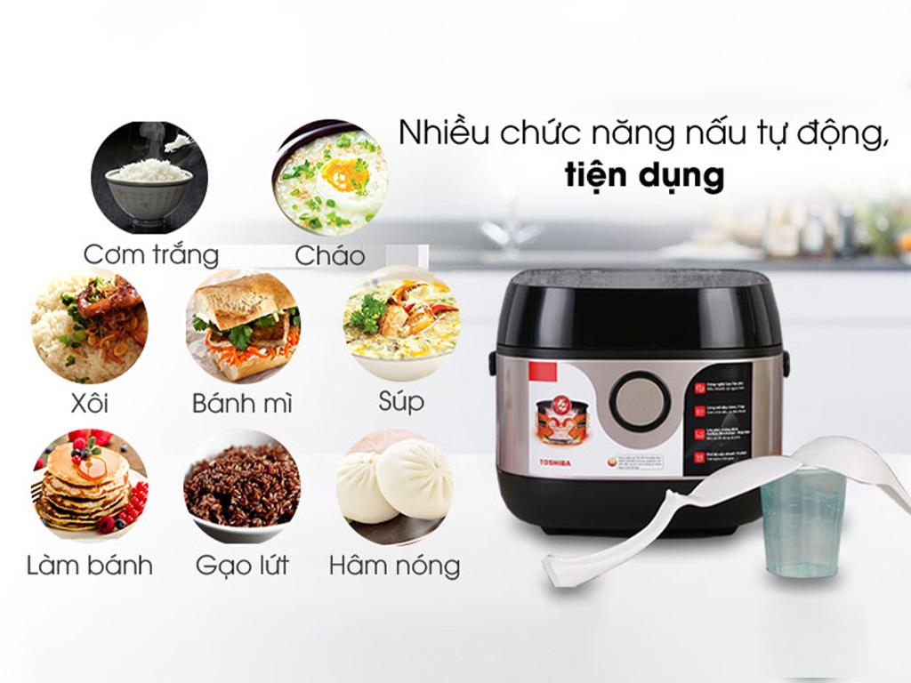 - Nồi Toshiba đa dạng chức năng nấu và được trang bị bộ hẹn giờ thông minh. nồi cơm điện Toshiba có nhiều chức năng như: nấu xôi, nấu cháo, hầm canh,... mang đến trải nghiệm tuyệt vời cho bạn và những người thân yêu.