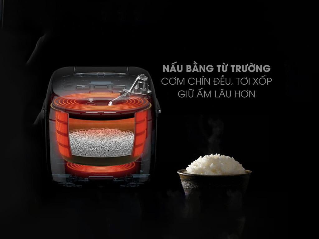 - Công nghệ nhiệt cao tần được tích hợp trên dòng nồi Toshiba cao cấp giúp nồi có khả năng tự sinh nhiệt ngay từ trong lòng. Bên cạnh đó công nghệ này còn giúp giảm tình trạng thất thoát nhiệt gây tốn điện.
