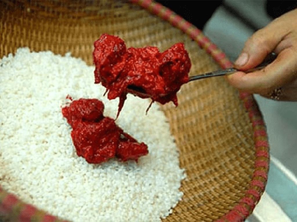 Bước 3: cách nấu xôi gấc bằng nồi cơm điện