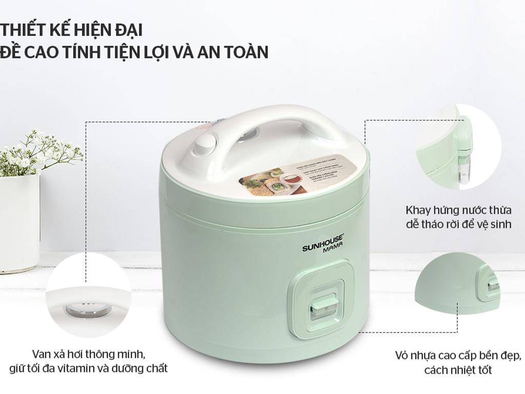 - Nồi cơm điện 1.2L Sunhouse Mama SHD8265B có thiết kế nổi bật với công suất nấu 500W cho món ăn thơm ngon, tiết kiệm thời gian nấu. Vỏ nồi được làm từ nhựa cao cấp cách nhiệt siêu bền. Lòng nồi cơm điện lòng niêu giúp cơm chín ngon hơn. Nồi cũng được trang bị thêm van thoát hơi thông minh giúp hạn chế nước đọng trong nồi giúp hạt cơm không bị nhão.