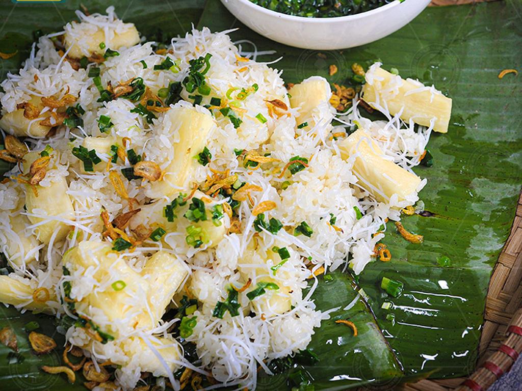 2. Cách nấu xôi sắn bằng nồi cơm điện với mỡ hành dẻo thơm ăn không bị ngán
