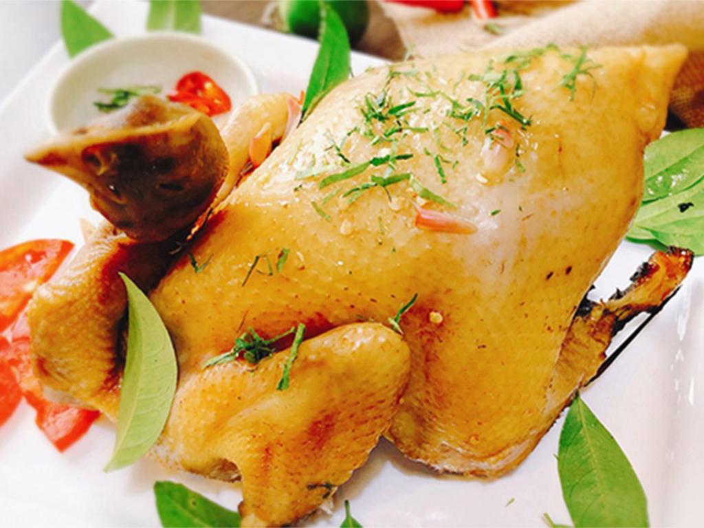 Sau khi gà đã chín, bạn bày gà ra đĩa và bắt đầu thưởng thức ngay nhé!