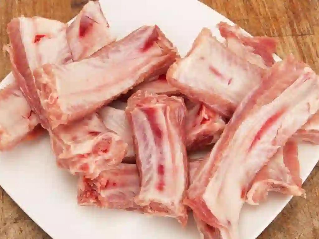 Bước 2: Sườn non ướp với hành tím băm, muối và hạt nêm trong 15 phút.