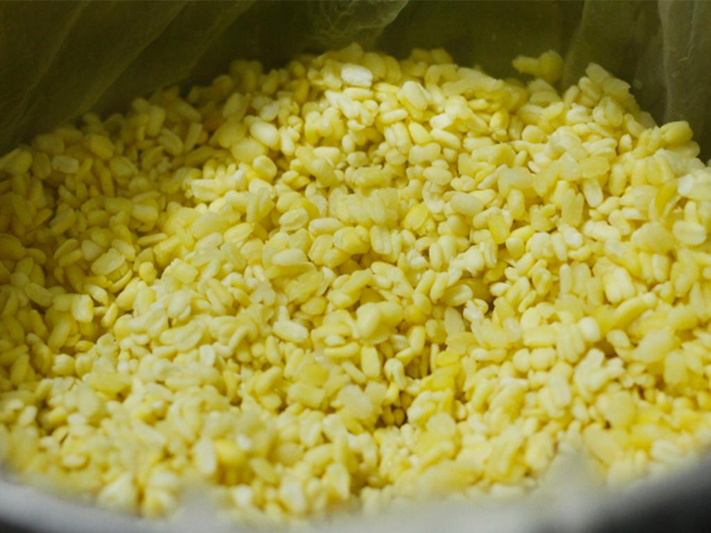 - Đậu xanh cũng rửa sạch, ngâm trong nước khoảng 3-4 tiếng cho đậu mềm.