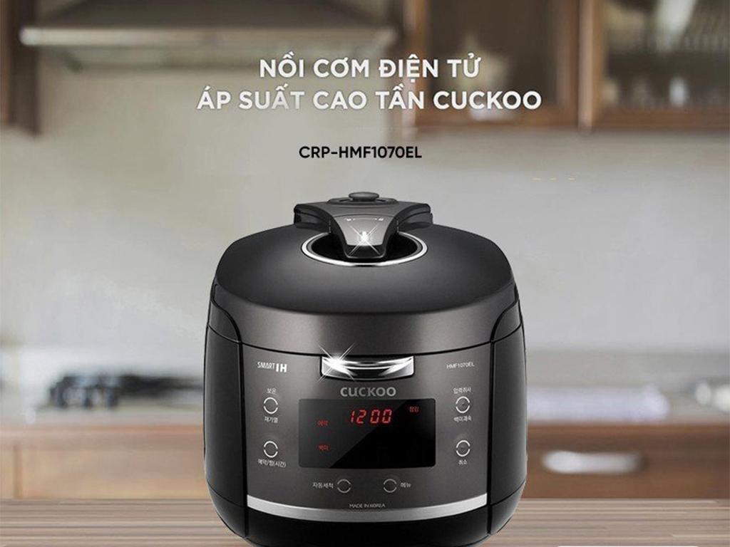 - Nồi cơm điện Cuckoo CRP-HMF1070EL có thiết kế thanh lịch và hiện đại. Nồi được trang bị công nghệ nấu cao tần hiện đại. Nồi cơm điện Hàn Quốc cũng được tích hợp nhiều chức năng nấu khác nhau như: làm bánh bằng nồi cơm điện, nấu cơm gạo lứt, nấu cháo, hầm xương hay nấu xôi bằng nồi cơm điện,...