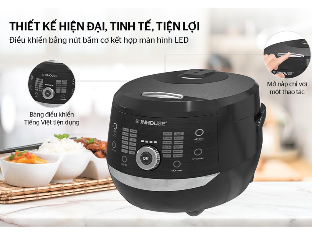 - Nồi cơm điện Sunhouse SHD8911 là người hỗ trợ đắc lực trong căn bếp Việt. Nồi được tích hợp 21 chức năng nấu sẵn cực tiện lợi. Thêm vào đó, lòng nồi phủ hợp kim chống dính cùng công nghệ nấu cao tần hiện đại cho món ăn thơm ngon và giàu dinh dưỡng.