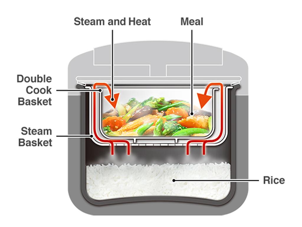 Một cách sử dụng nồi cơm điện Hitachi Nhật Bản loại 1.8 lít RD-D18WFY (RE) thông dụng và tiện lợi là Double Cook. Bạn có thể tích hợp vừa nấu cơm ở xửng dưới, vừa nấu đồ ăn ở xửng trên mà không lo cơm bị bám mùi thức ăn bằng các bước đơn giản sau đây: