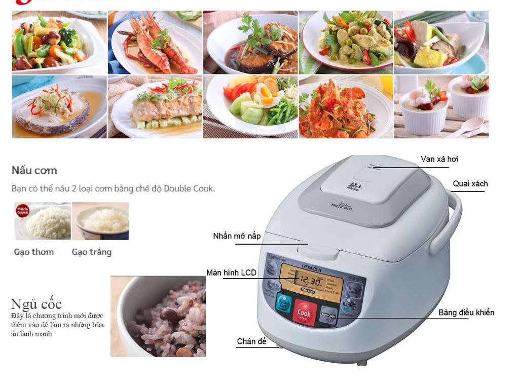 nồi cơm điện hitachi nội địa nhật có các chế độ nấu cơm phù hợp với từng loại gạo